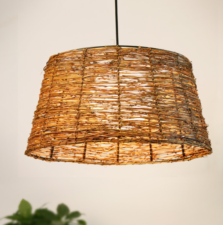 This handwoven rattan pendant light features a warm, drum-shaped design perfect for cafes, dining rooms, or natural decor settings. Crafted from eco-friendly materials with a cozy glow.