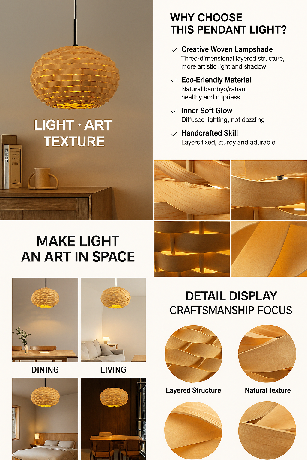 Elevate your interior with this geometric bamboo pendant light. Hand-woven for natural charm and artistic flair—perfect for living rooms, dining spaces, and more.