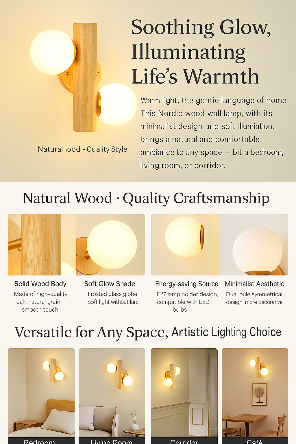 This minimalist wall lamp features a long natural wood beam with a carved channel that emits warm LED light. A blend of rustic and modern style, it's ideal for accenting spaces like living rooms, hallways, and bedrooms. Its organic wood grain and embedded light create a cozy and artistic ambiance.