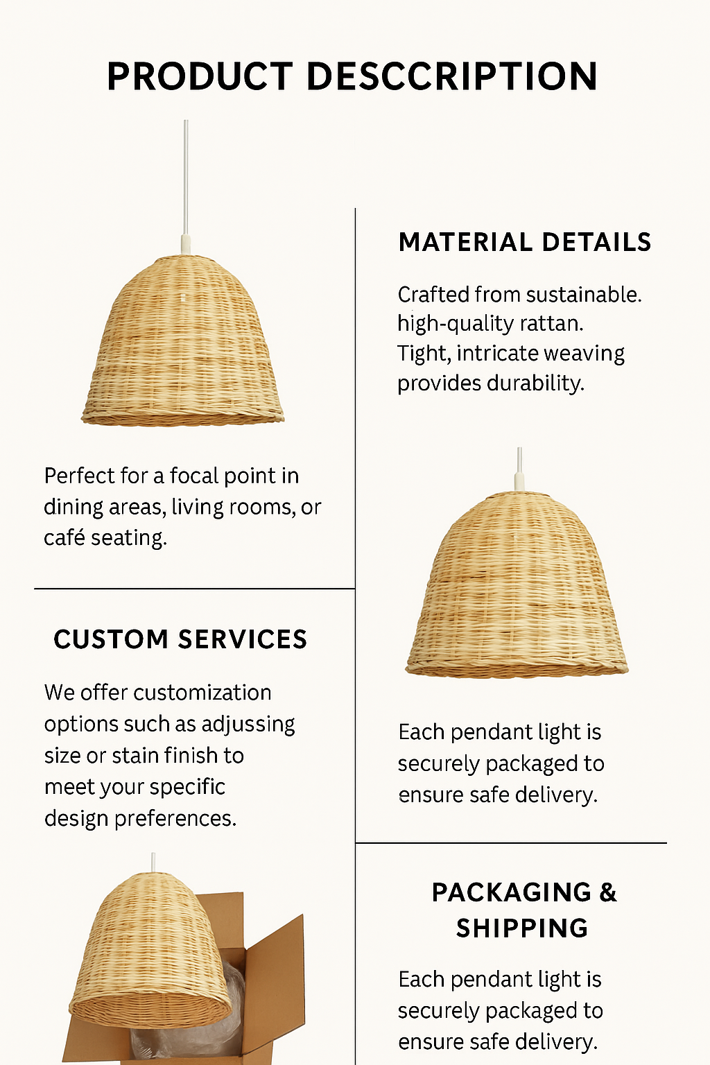 Discover our handmade rattan woven pendant light, crafted from natural bamboo to bring warmth and elegance to your living space. Perfect for bohemian and rustic interiors.
