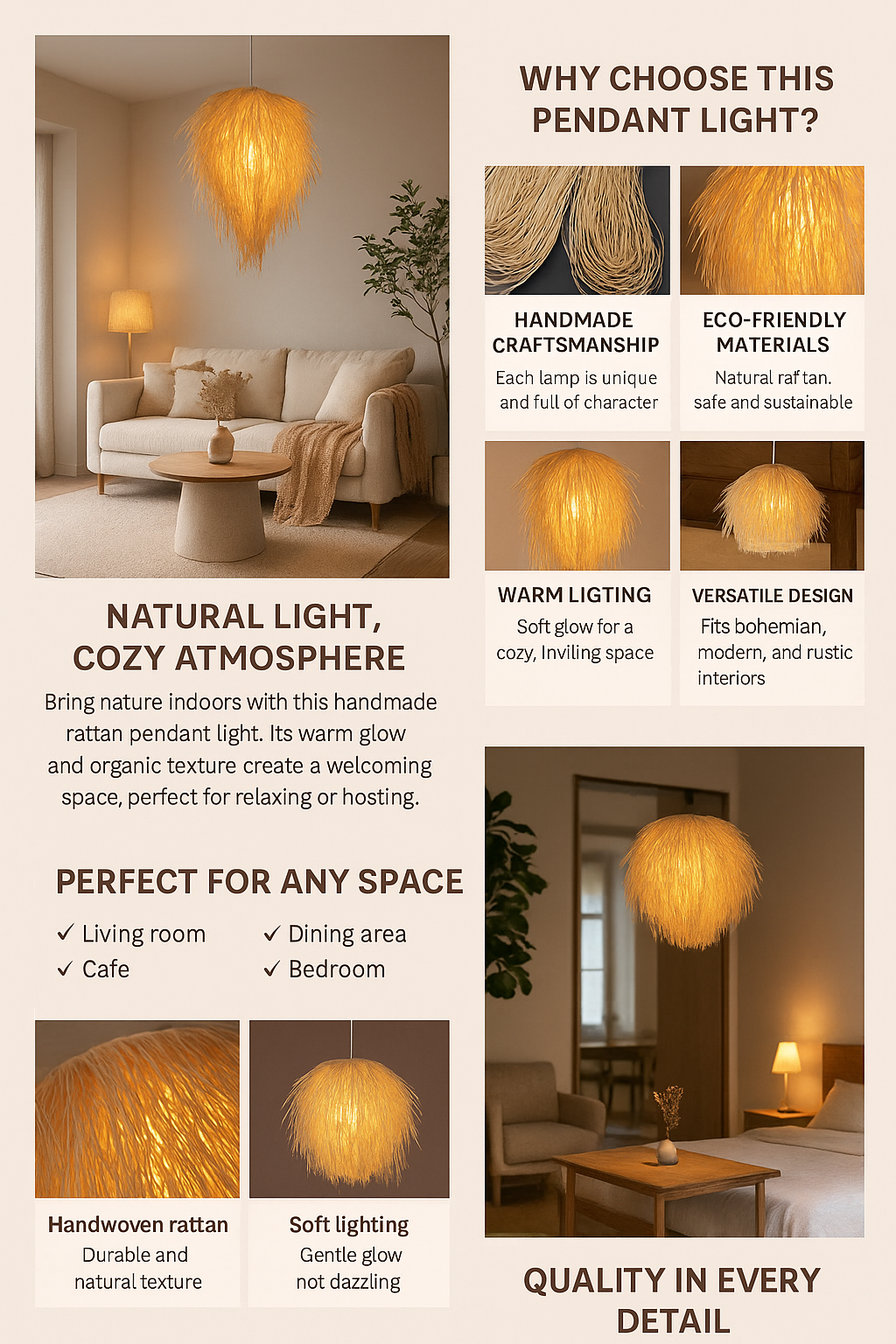 Shop this modern handwoven bamboo pendant light, perfect for restaurants and leisure spaces. Eco-friendly, elegant, and ideal for soft ambient lighting.