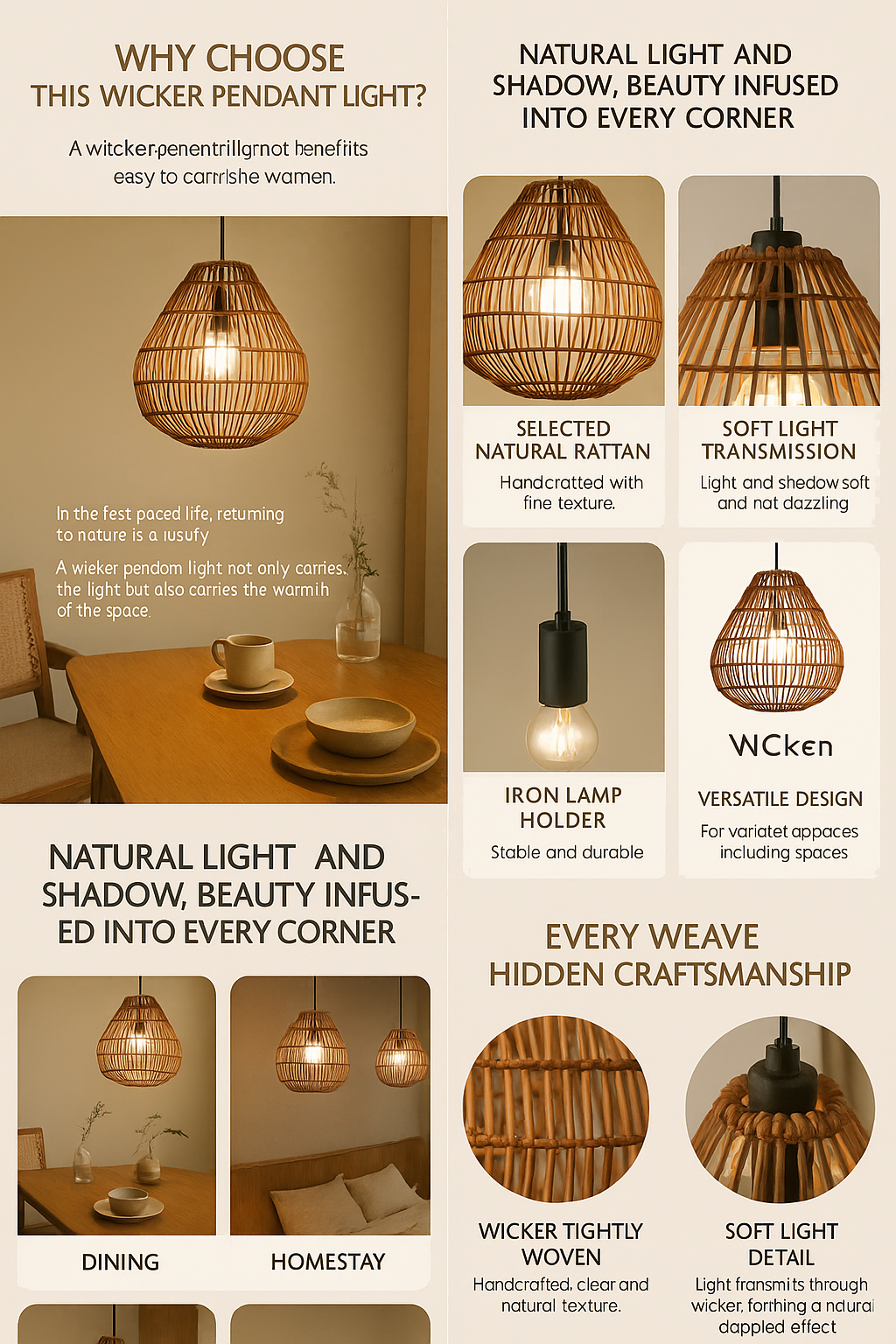 Elevate your dining or commercial space with this handcrafted rattan pendant light. Ideal for restaurants, hotels, and homestays, it offers a warm, artistic ambiance.
