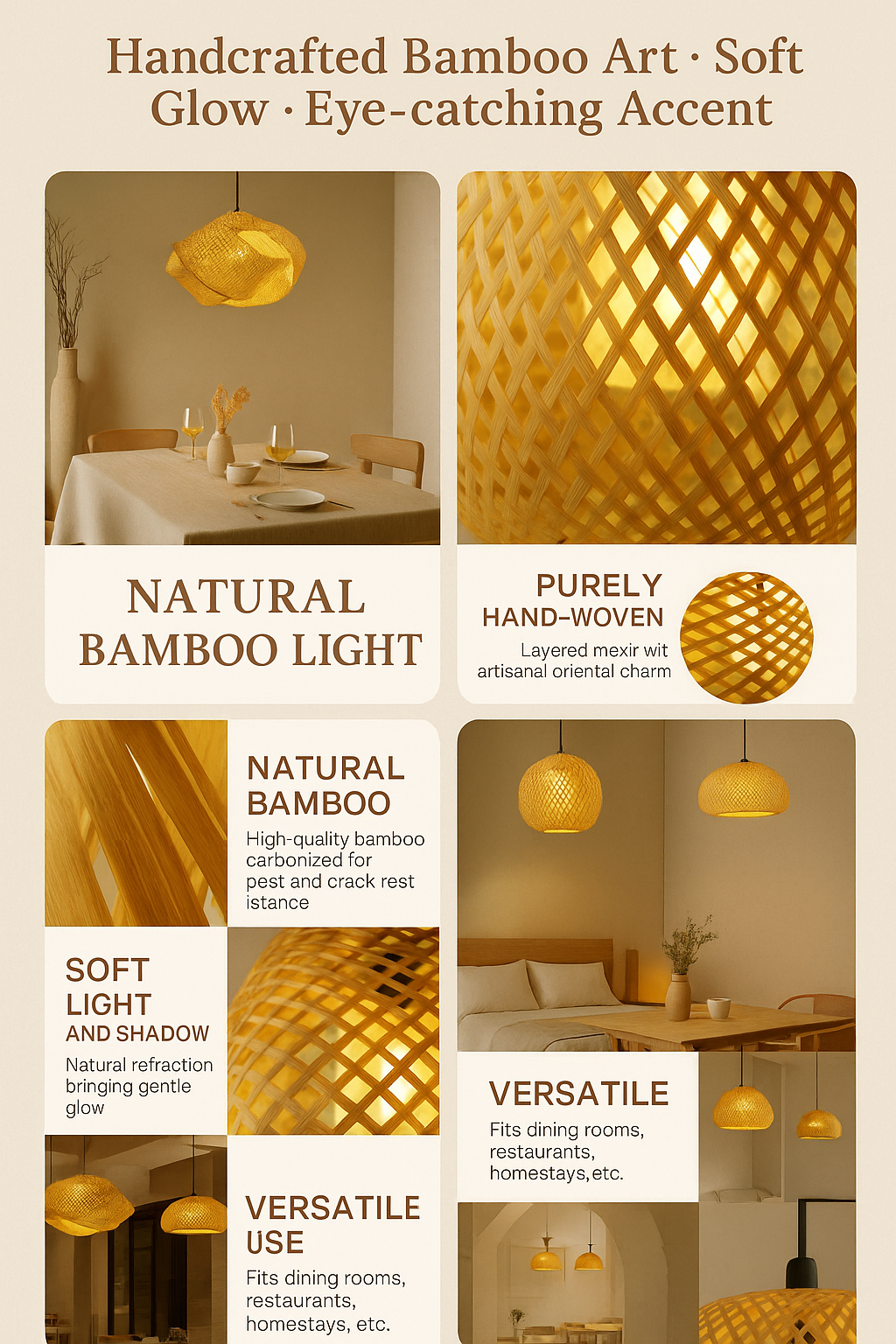 Elevate your interior with this artistic handwoven bamboo pendant light. Perfect for restaurants, hotels, and homestays with modern or rustic themes.