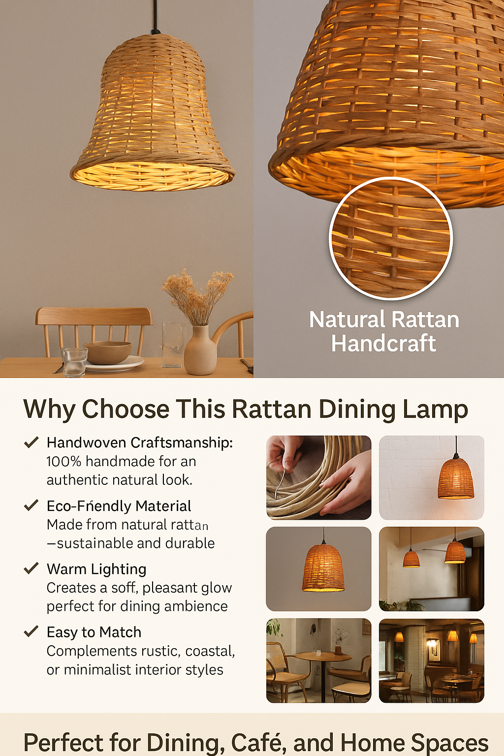 Natural Rattan Pendant Light – Handwoven Bell Lamp for Restaurant & Commercial Use