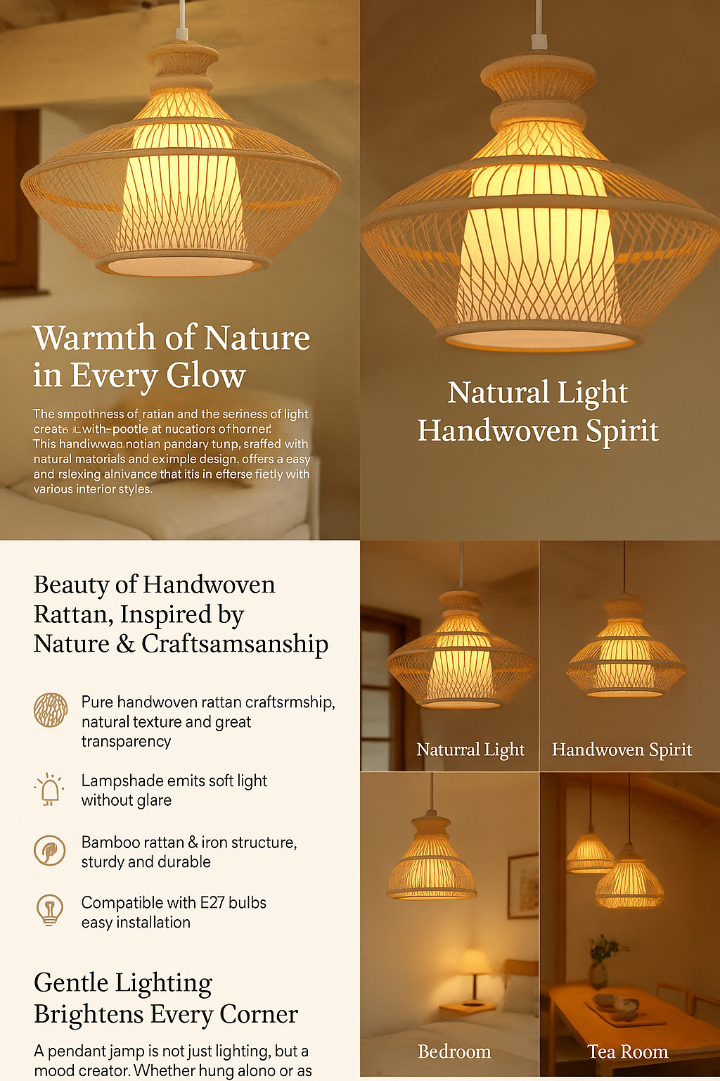 This handcrafted bamboo rattan pendant light brings natural warmth and artisanal charm to any space. Ideal for restaurants, homestays, dining rooms, cafes, or commercial interiors, its woven structure casts soft, ambient lighting for a cozy, elegant atmosphere.