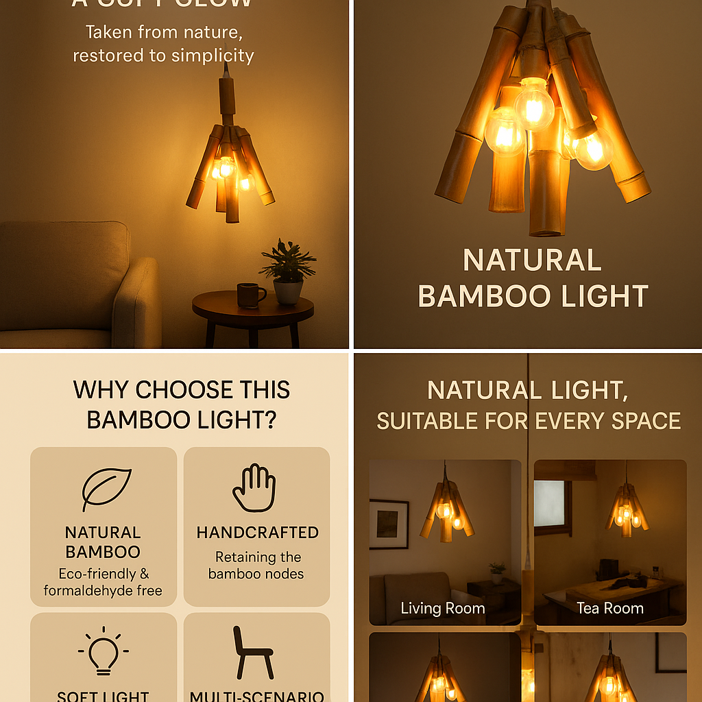 This handmade bamboo pendant light brings natural elegance to hotels, guesthouses, restaurants, and rustic-themed interiors. Carefully crafted from eco-friendly bamboo, it offers both style and sustainability.