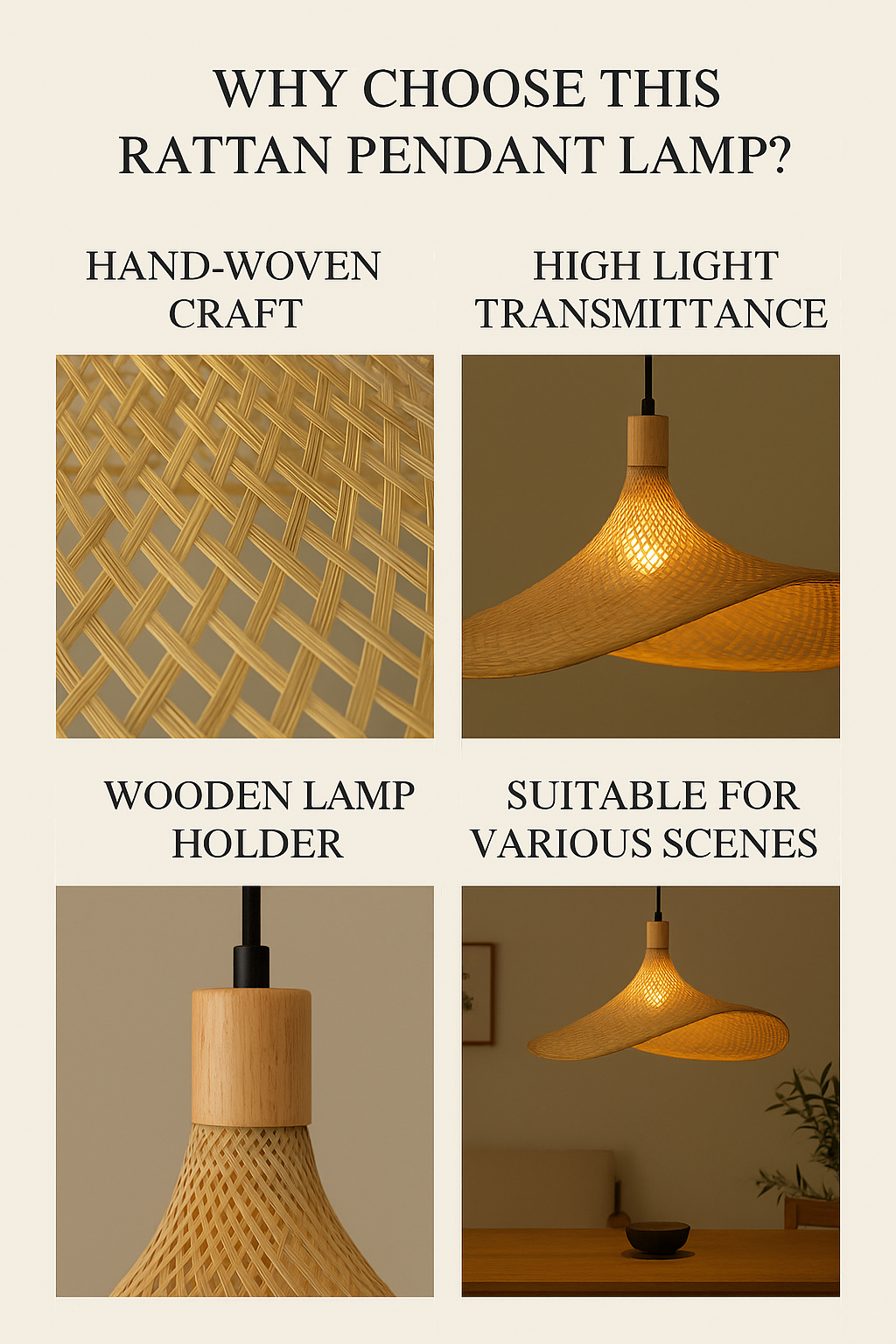 • Handcrafted Woven Rattan Pendant Light – Modern Natural Ceiling Lamp