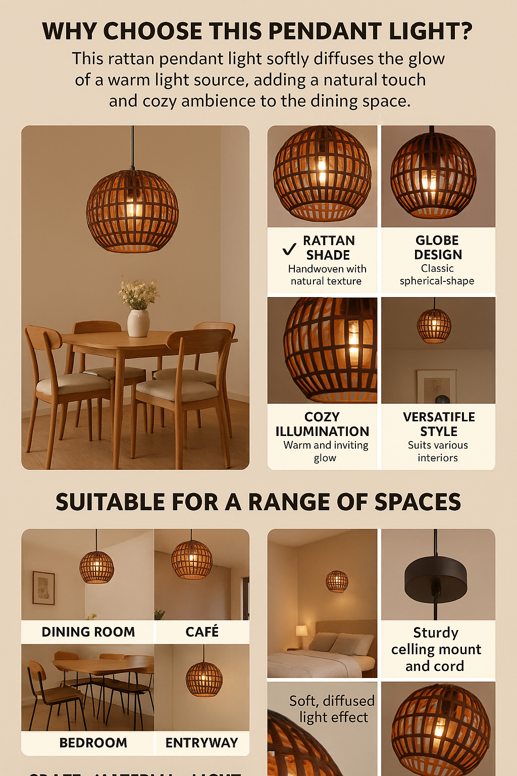 Bamboo Globe Pendant Light – Handmade Rustic Rattan Ceiling Lamp