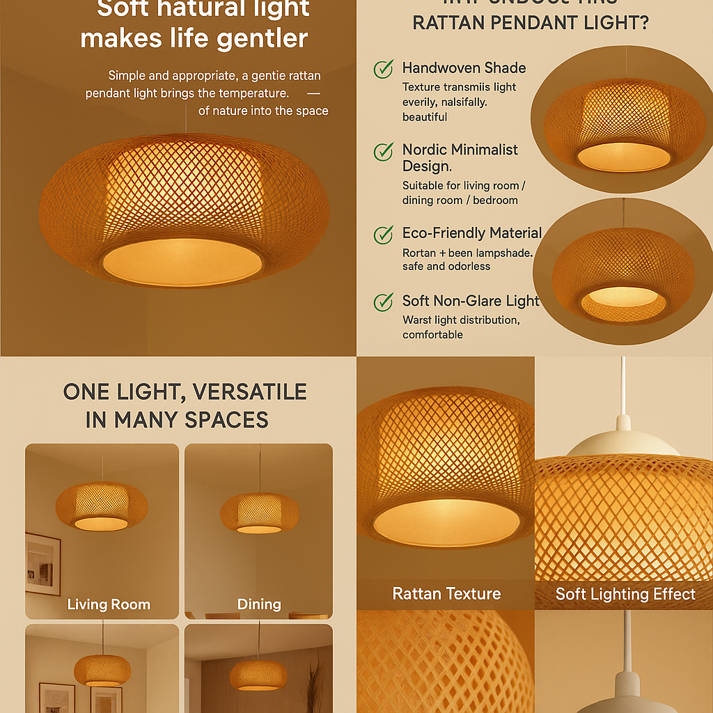Handmade bamboo pendant light with cage dome design. Ideal for bedrooms, dining spaces, or cafes. Modern, eco-friendly, and minimalist with a soft warm glow.