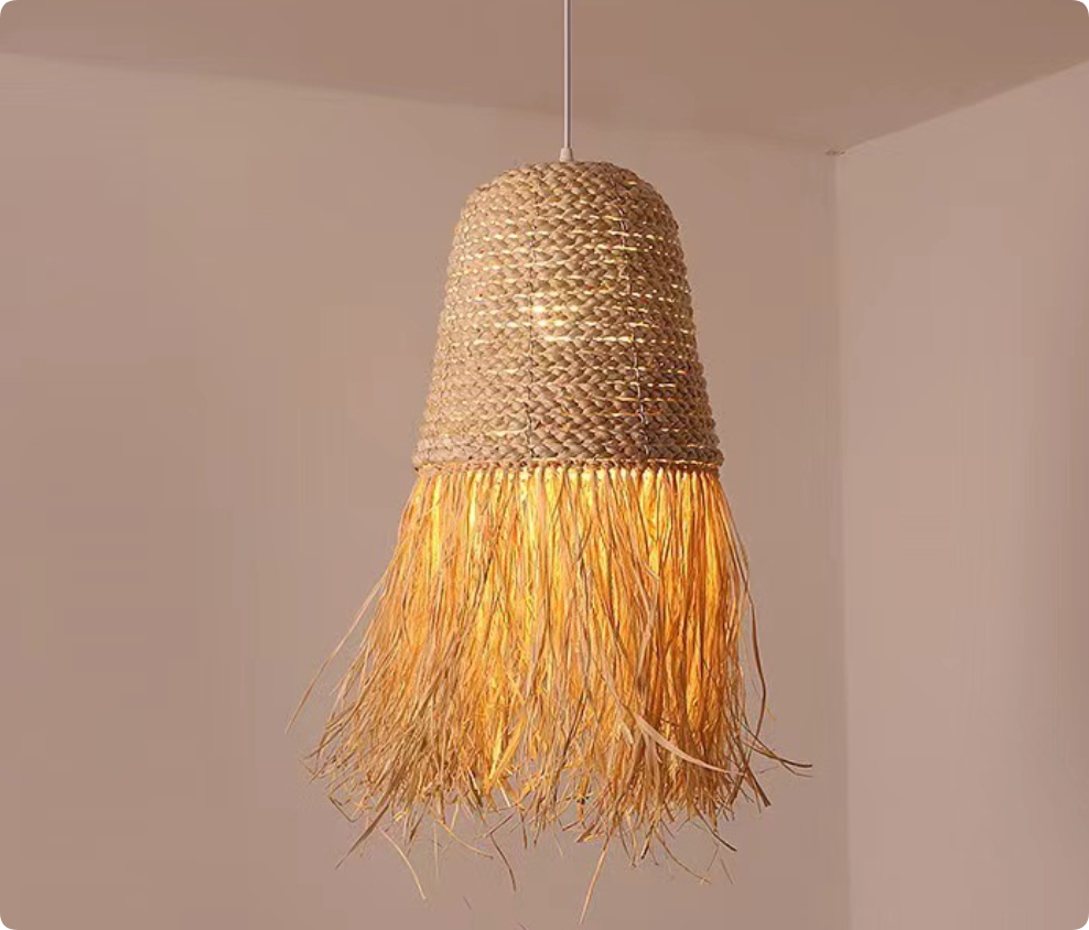 Discover our handmade woven rattan pendant light with a stylish fringe design. Perfect for adding warmth and natural charm to your living room, cafe, or boho interior.