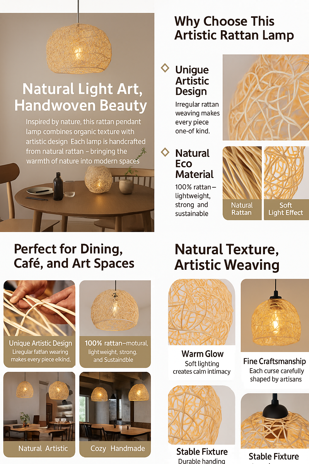 In modern restaurant design, woven lighting has become a defining feature for creating atmosphere and style. From the boho chic rattan ceiling light to the elegant bamboo chandelier, these artisan fixtures bring both function and visual intrigue to any dining space.